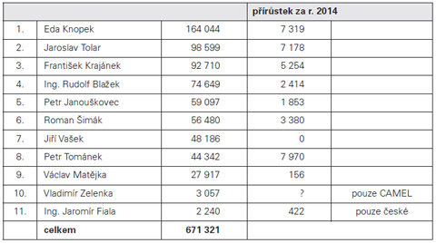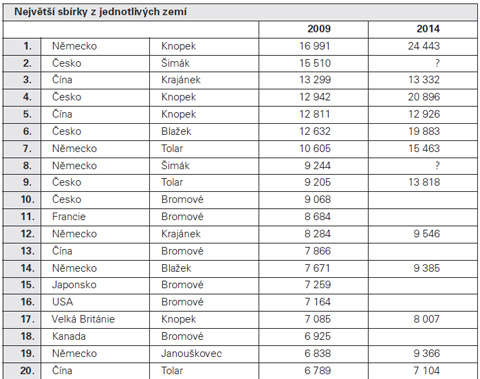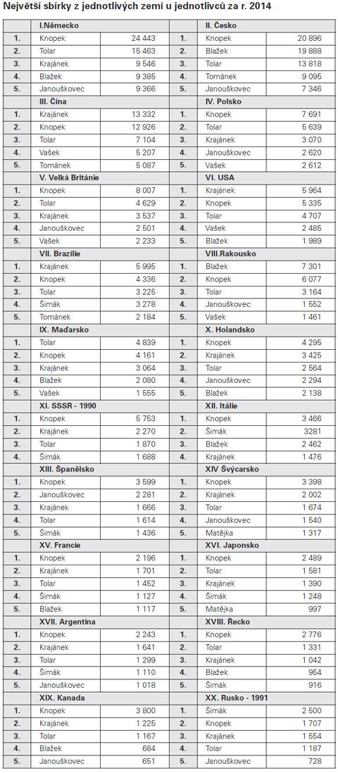Jediná malá poznámka u sběratele Romana Šimáka - čísla za r. 2014 jsou vždy menší než za r. 2009.